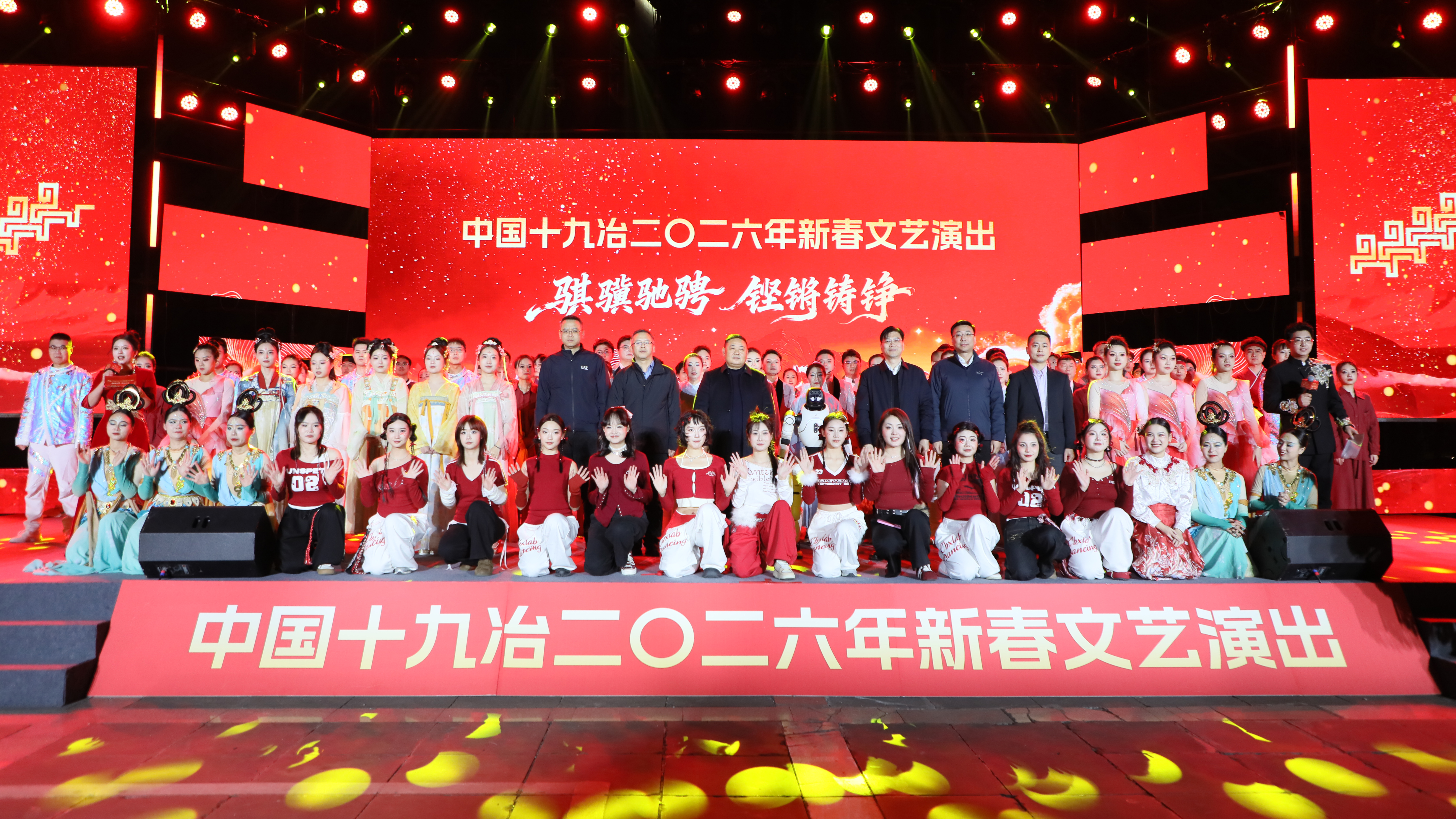 員工自導自演的迎春文藝匯演作為系列活動的重頭戲,節目精彩紛呈、高潮迭起。演出節目開始前,公司黨委書記、董事長歐成華代表黨政工團,向全體干部職工、離退休老同志及家屬,以及關心支持公司發展的各級領導、社會各界友人表達了誠摯感謝和新春祝福。在新春賀詞中,歐成華回望了公司六十載崢嶸歲月與“十四五”發展的亮眼成績,站在新甲子的歷史高點,號召全體十九冶人錨定既定目標,激揚龍馬精神,以“戰馬”本色扛改革重任,以“駿馬”風姿譜時代華章,共赴基業長青的繁花征途。鏗鏘的話語、殷切的期盼,讓廣大干部職工備受鼓舞。